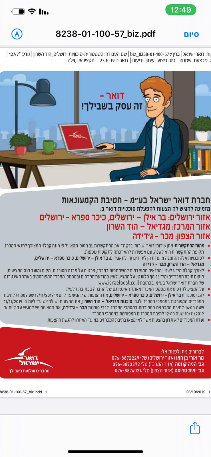 מכרז להפעלת סוכנות דואר במאכר ג'דידה